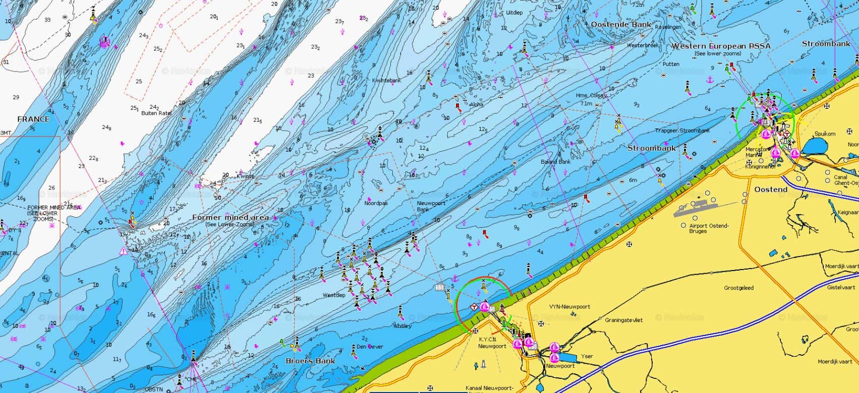 - The sailing areas is zone 3 indicated in the map enclosed, within 2 NM NE of the harbour entrance and not sail closer than 200 m from the low water line. Please mind there is also an offshore farm which is a prohibited area (see Nieuwpoort.jpg)